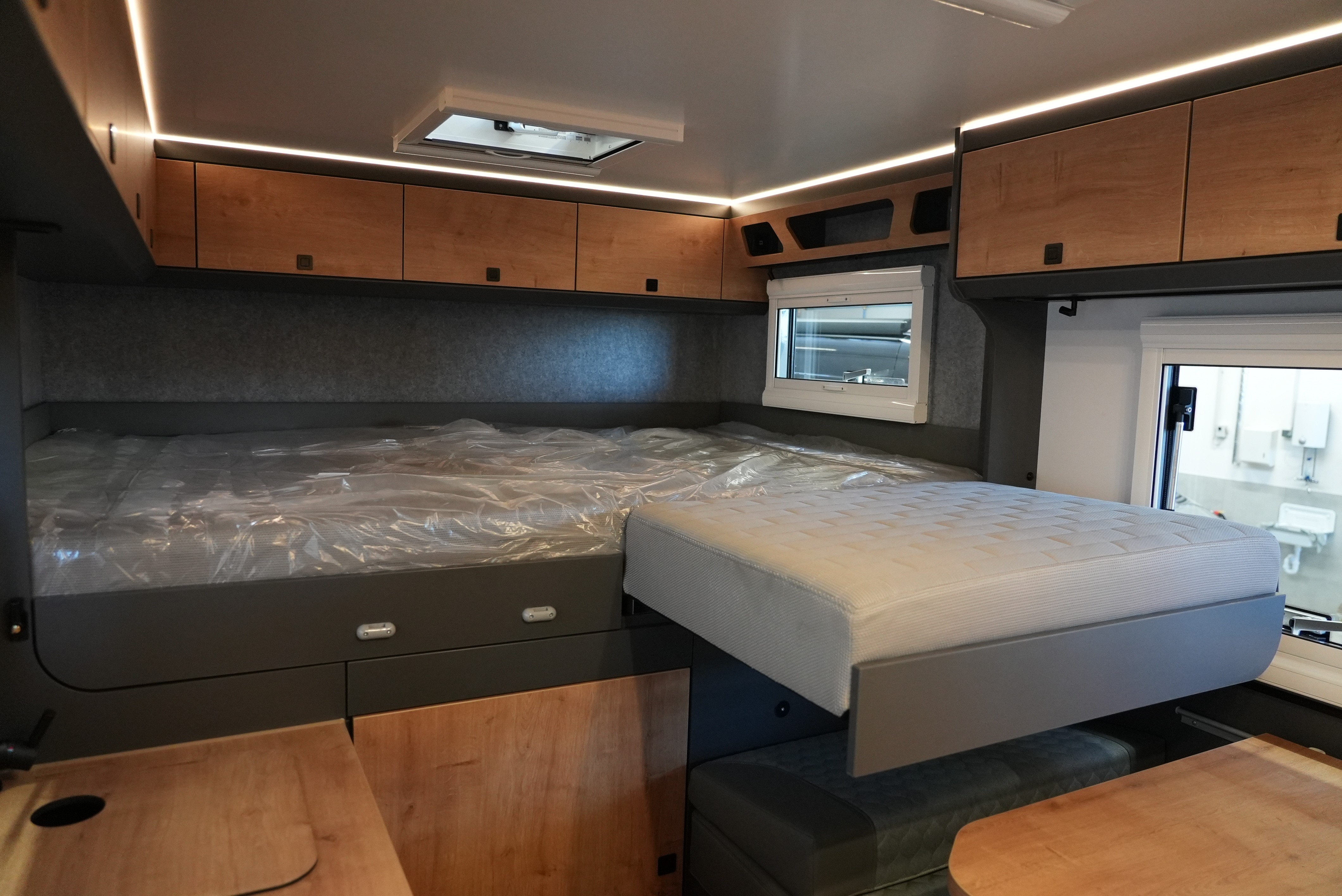 Dank des einfachen Auszugssystem wird aus dem bewährten Querbett ein Längsbett. Ab sofort als Option erhältlich.