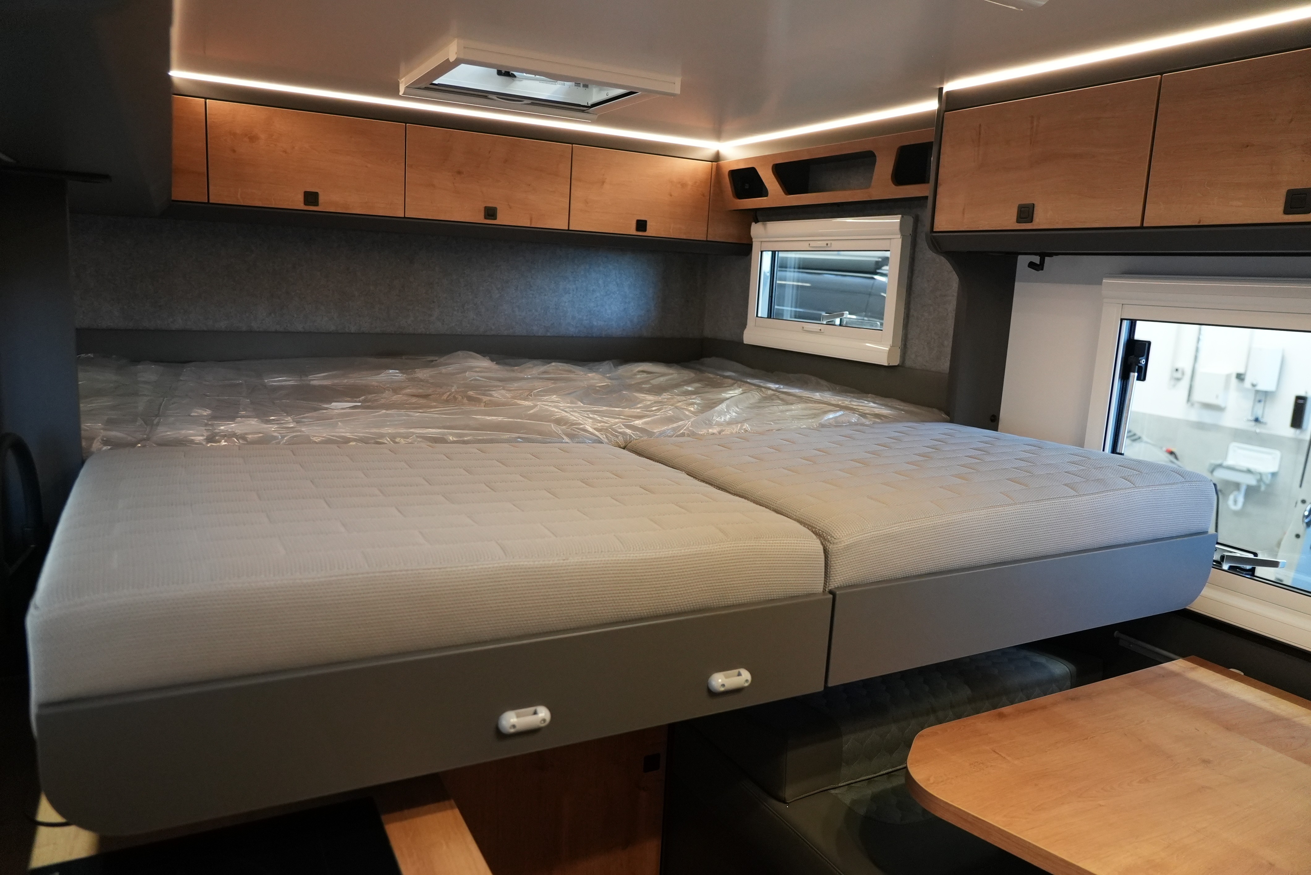 Dank des einfachen Auszugssystem wird aus dem bewährten Querbett ein Längsbett. Ab sofort als Option erhältlich.